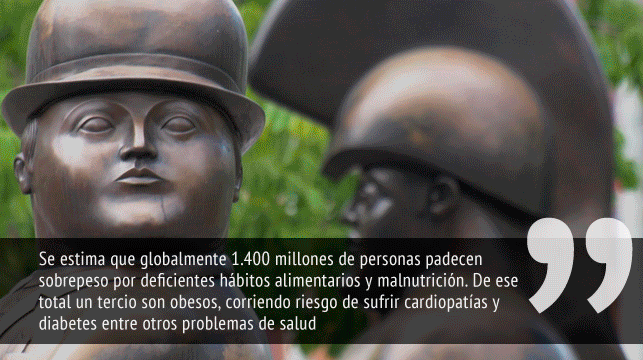 c) “Se estima que globalmente 1.400 millones de personas padecen sobrepeso por deficientes hábitos alimentarios y malnutrición. De ese total un tercio son obesos, corriendo riesgo de sufrir cardiopatías y diabetes entre otros problemas de salud.”